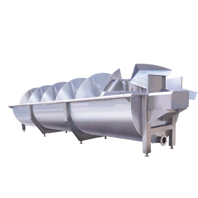 It is used for precooling of poultry carcass before segmentation, and uses water as the medium to cool the carcass to achieve the purpose of deacidification and detoxification. This equipment is mainly composed of tank body, drive system, screw propulsion system, fishing device, aeration system, etc.