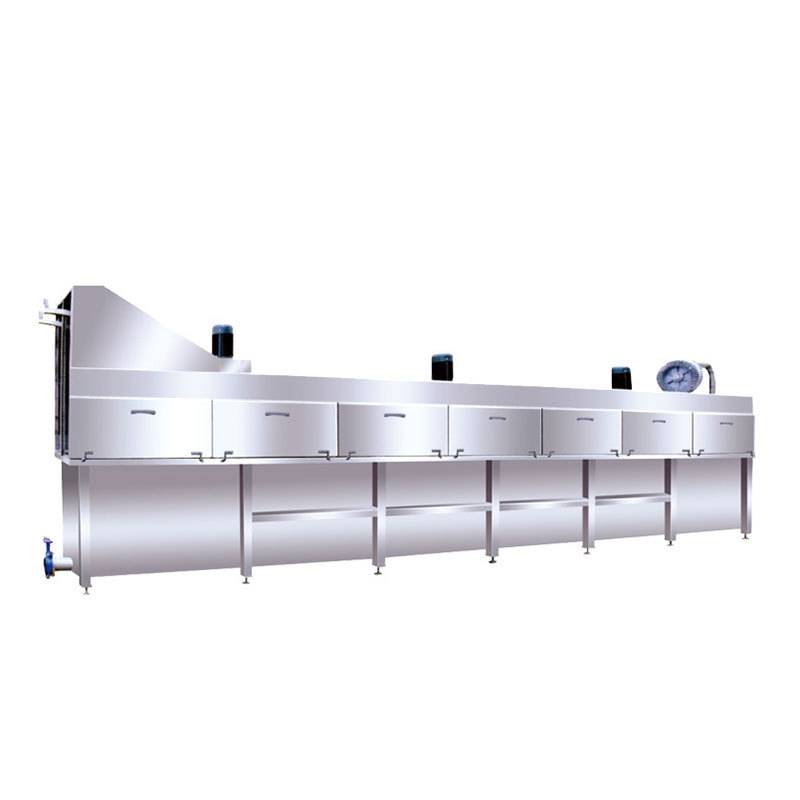 The scalding machine is the necessary equipment for poultry before entering the depilator. The poultry body is hung on the hook, and moves at a certain working speed on the guide rail in the scalding machine to ensure the scalding time of the poultry body, and can be depilated after scalding. The scalding tank is mainly composed of five systems: the body, the heating system, the wind stirring system, the water tank device, and the water level control system.